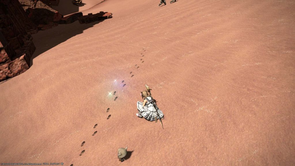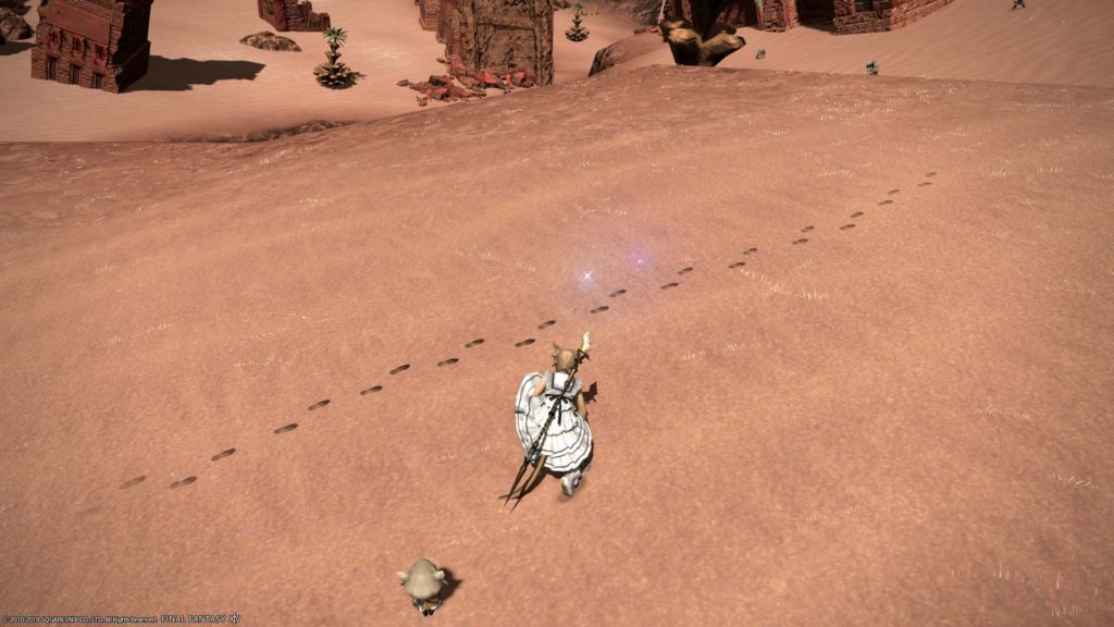投稿日: 2019年7月4日2019年6月30日 投稿者: まりにゃ~クエスト『あの娘の足跡』 テスリーンと話してクエスト『あの娘の足跡』を引き受けたにゃ! 指定地点で見渡したにゃ 小ぶりな足跡を調べたにゃ 2箇所目の小ぶりな足跡を調べたにゃ 3箇所目の小ぶりな足跡を調べたにゃ 4箇所目の小ぶりな足跡を調べたらカットシーンにゃ 最後にアリゼーと話したにゃ クエスト『あの娘の足跡』をコンプリートしたにゃ!1,007ギルを手に入れたにゃ460000ポイントの経験値を得たにゃ