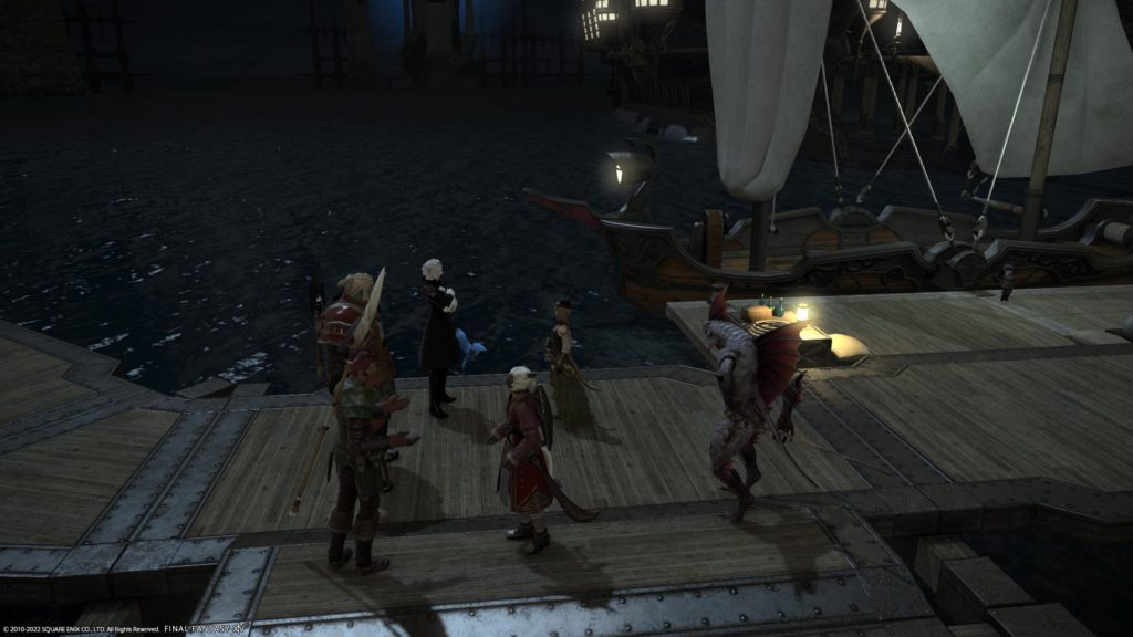 船着場:リムサ・ロミンサ付近でメルウィブと話したらカットシーンにゃ