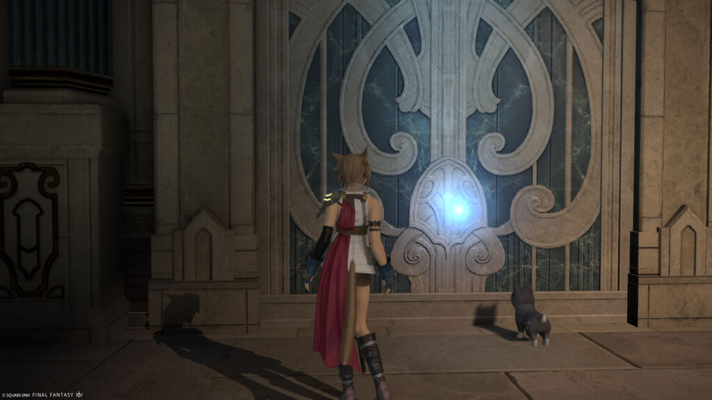 メインホールの指定地点で待機したらカットシーンにゃ