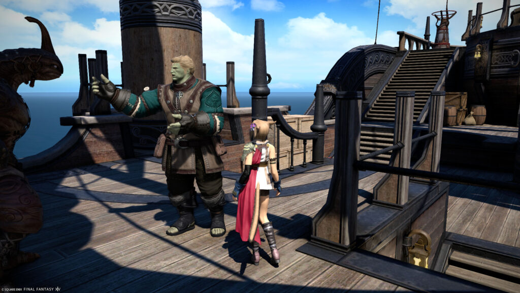 「威勢のいい船員」と話すことで、移動することができるみたいにゃ