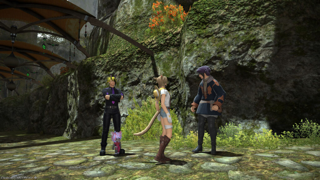 フィルコックスを連れて焦っている男性と話したにゃ